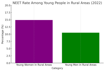 Gender Disparities: Rural areas have a higher share of NEETs* (young people not in education, employment, or training) compared to urban areas. In 2022, 14.9% of young women in rural areas were NEETs, compared to 10.5% of young men. This indicates a gender gap that needs to be addressed to ensure equal opportunities for young people in these regions.