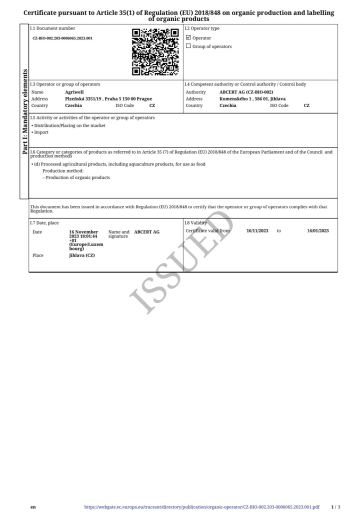 Before export, the bio-quality of our products is confirmed under the strict supervision of our inspection bodies according to samples tested by accredited European laboratories.