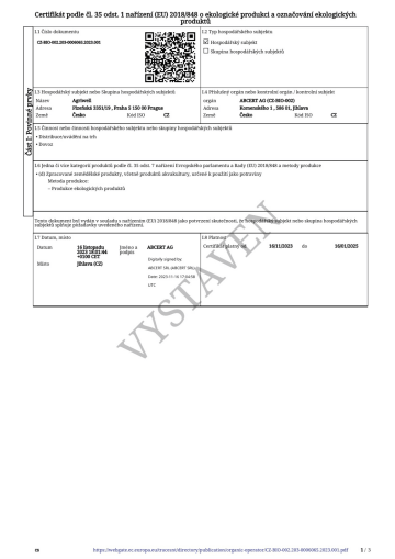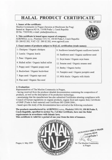 Naší hlavní prioritou je nabízet produkty, které plně splňují přísné organické standardy. Jsme držiteli několika certifikátů od uznávaných kontrolních autorit, které potvrzují, že každý krok našeho provozu – od pěstování surovin až po konečné zpracování a balení – odpovídá požadavkům na organickou kvalitu.